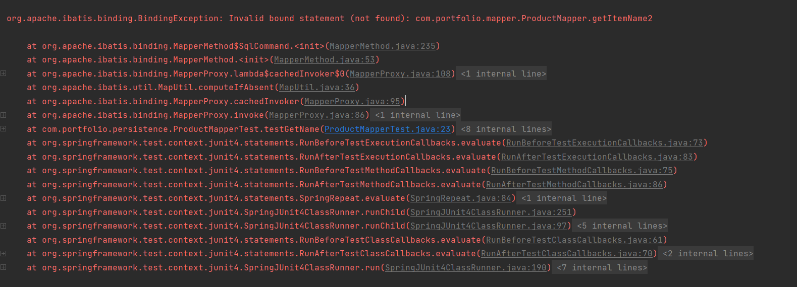 아래와 같이 MyBatis 관련 테스트코드 작성 중