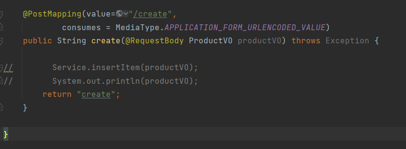 반대로 컨트롤러에서는 ProductVO 클래스가 아닌 String으로 받으면 여러개의 파라미터를 하나의 String 객체로 받아 아래의 예시처럼 &로 각각의 파라미터를 구분할 수 있다